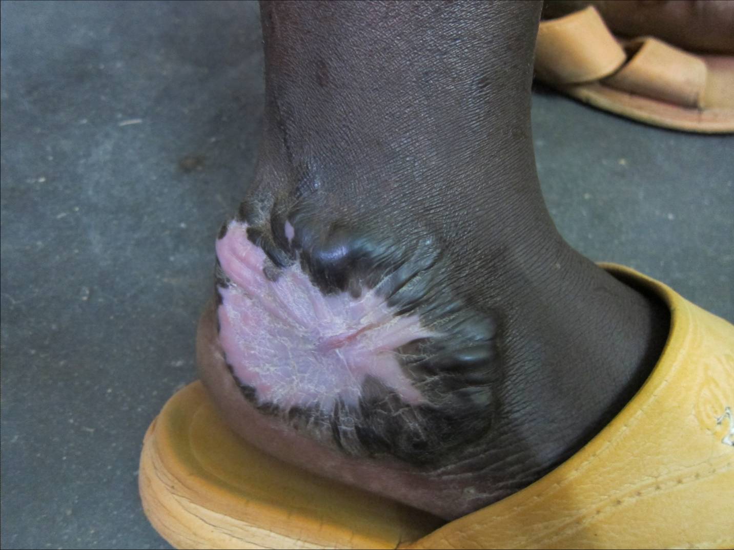 Keloide nach Verbrennung (Verbrennungen sind in Uganda durch das Kochen auf offener Flamme häufig und führen oft zu schweren ausgedehnten Keloiden)
